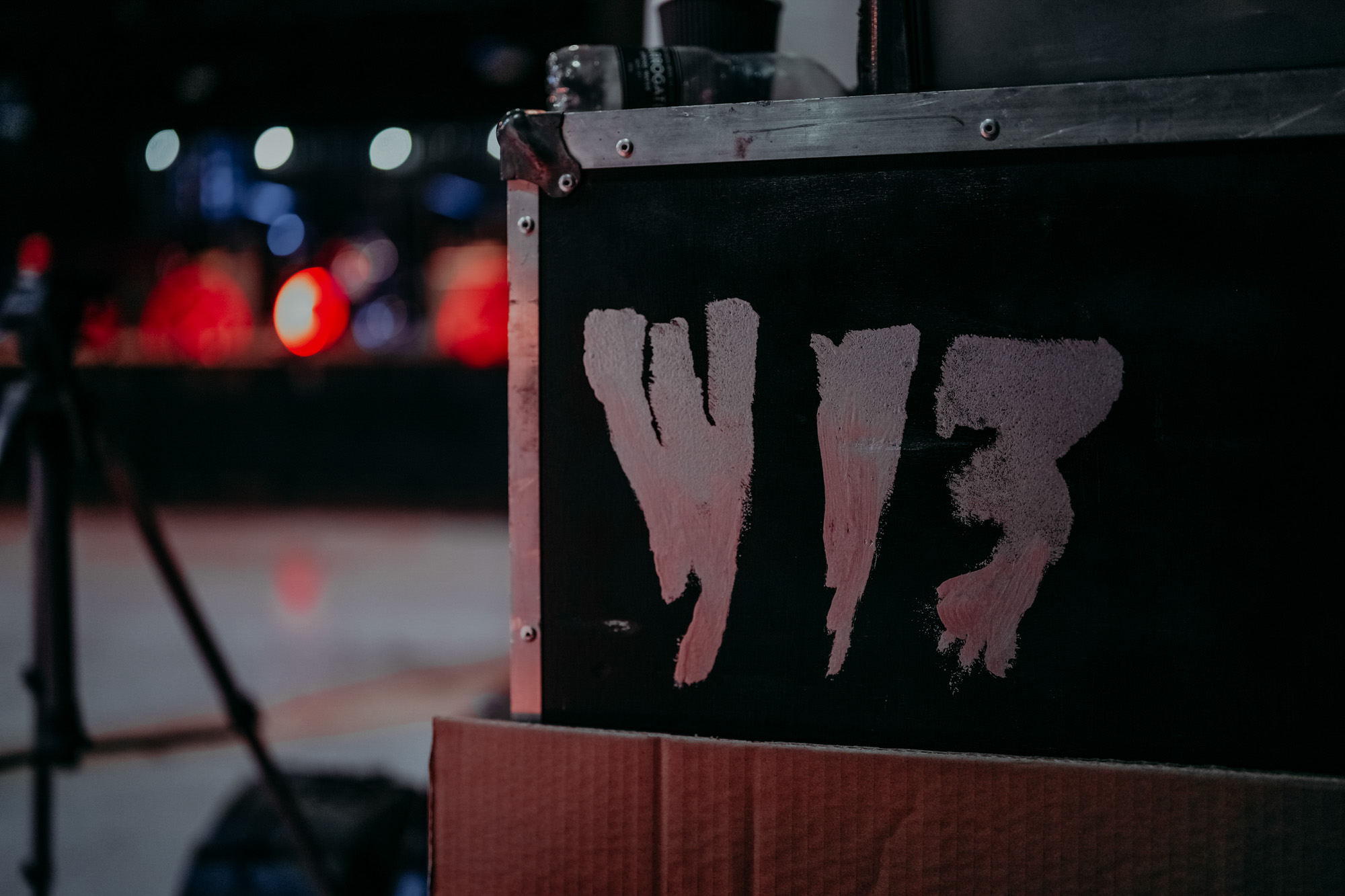 The wide F1.2 aperture was the first thing I wanted to take full advantage of, so while the men were setting up the stage, I was focused on taking detailed shots of the various things around me. The band’s shorthand logo is striking in and of itself, and proudly branded many of their belongings.