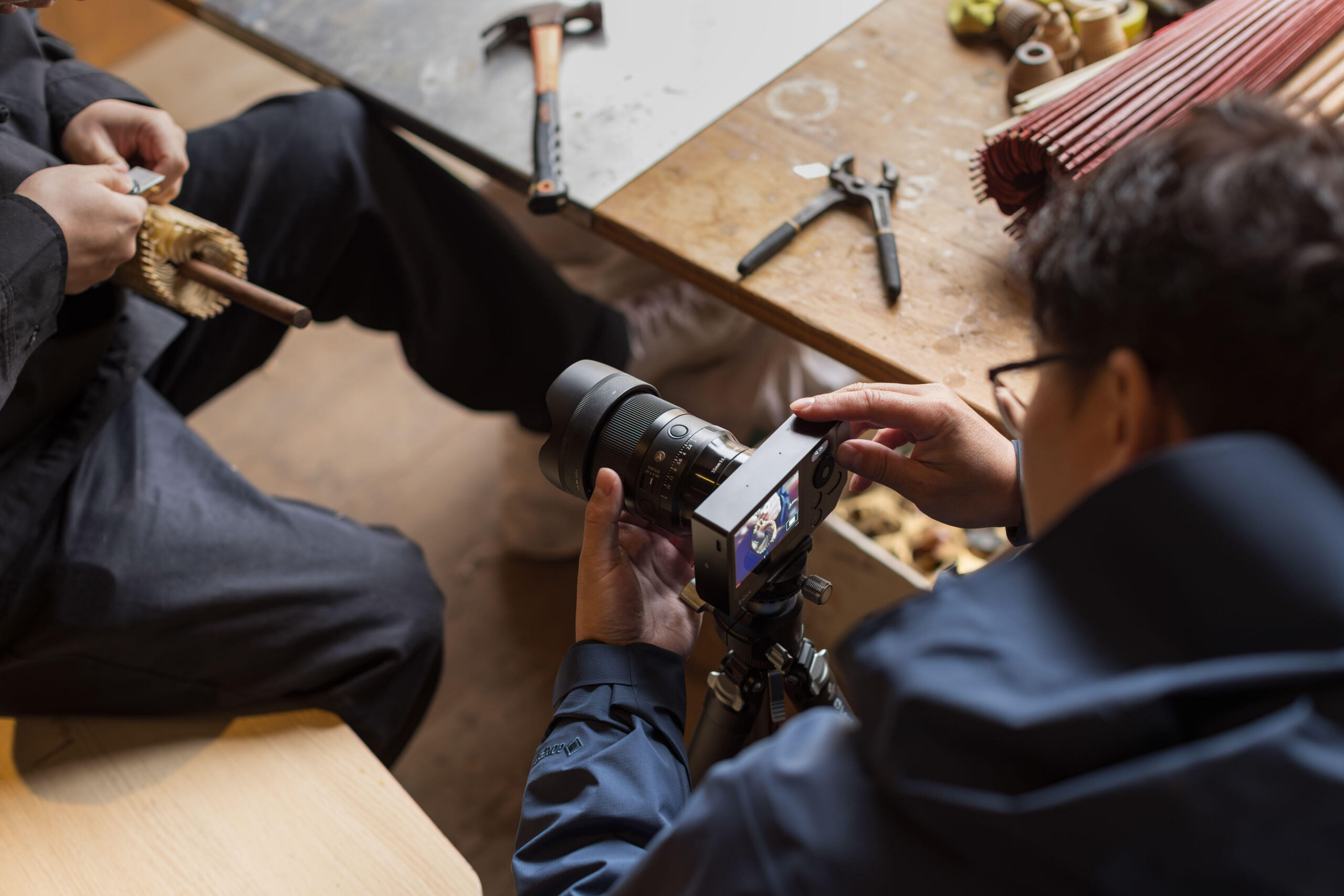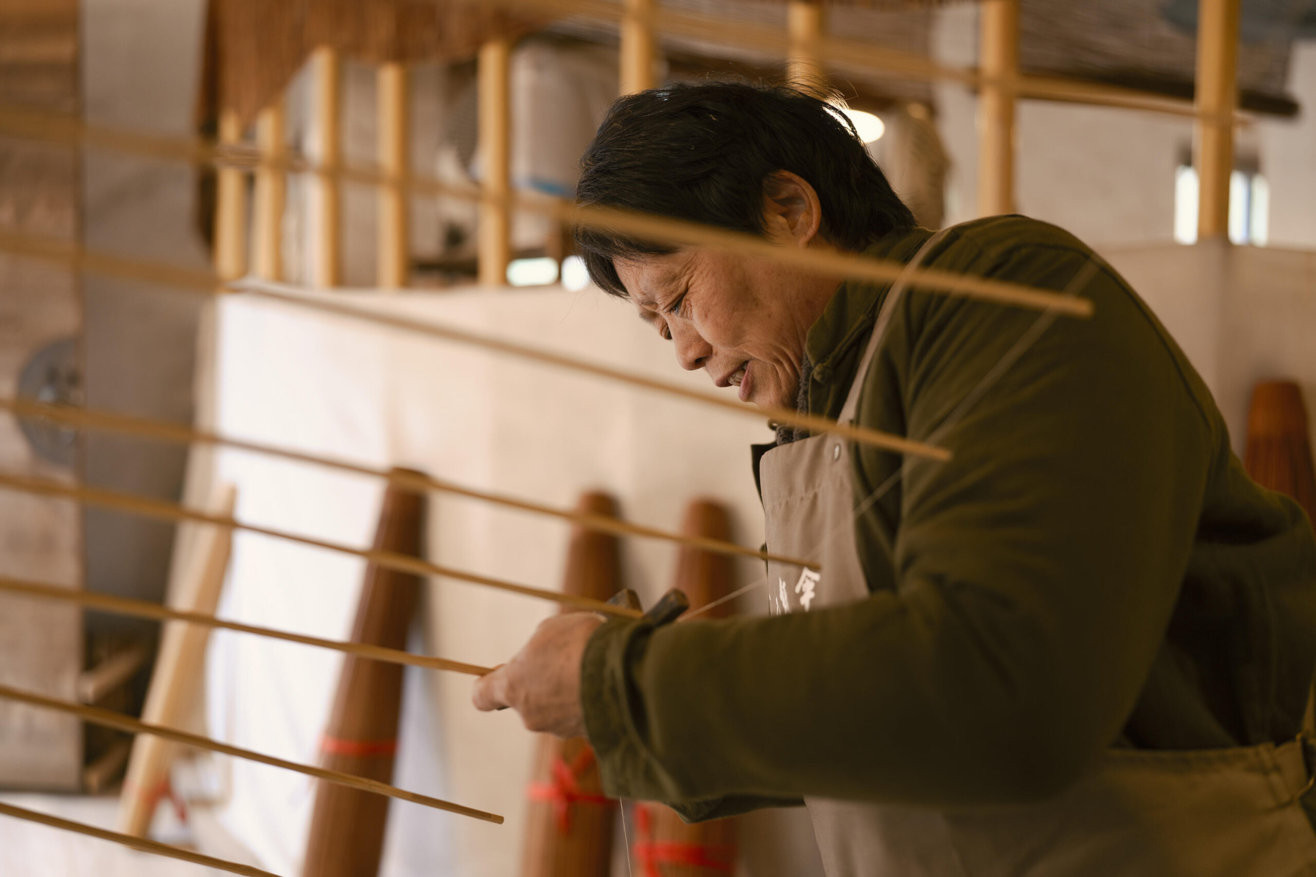 Such compact working environments truly test a lens’ adaptability. A focal length that is too wide can easily introduce excessive visual clutter, while one that is too narrow makes it difficult to fully convey the production process. The perspective of the Sigma 35mm F1.4 DG II | Art is perfectly balanced. When photographing steps such as shaping the bamboo ribs or pasting the umbrella surface, it captures both the artisans’ hand movements and the surrounding environment in a completely yet controlled way. The field of view never feels overly expansive or loose, allowing viewers to feel immersed in the scene and to experience the focus and delicacy of the craftsmanship firsthand.