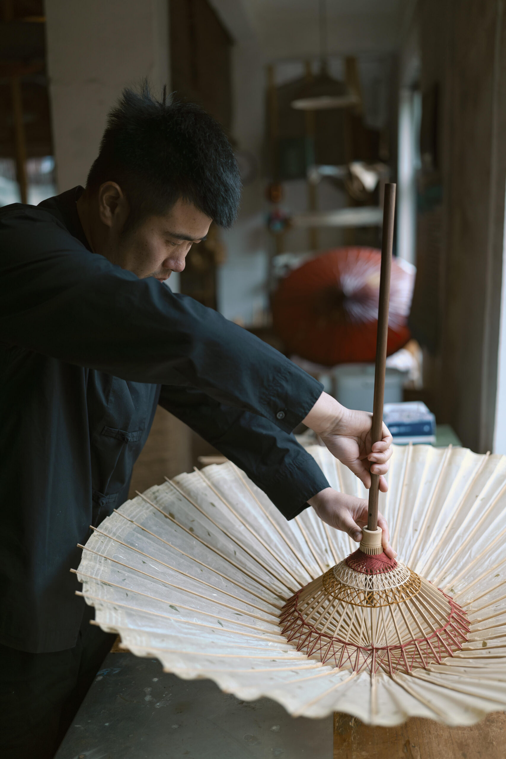 For this shoot, I brought this lens to the Yuhang Paper Umbrella Workshop to document the entire process of making a traditional paper umbrella. Through the interaction between photographic equipment and subject matter, I sought to experience the expressive power of both traditional craftsmanship and modern optical technology.