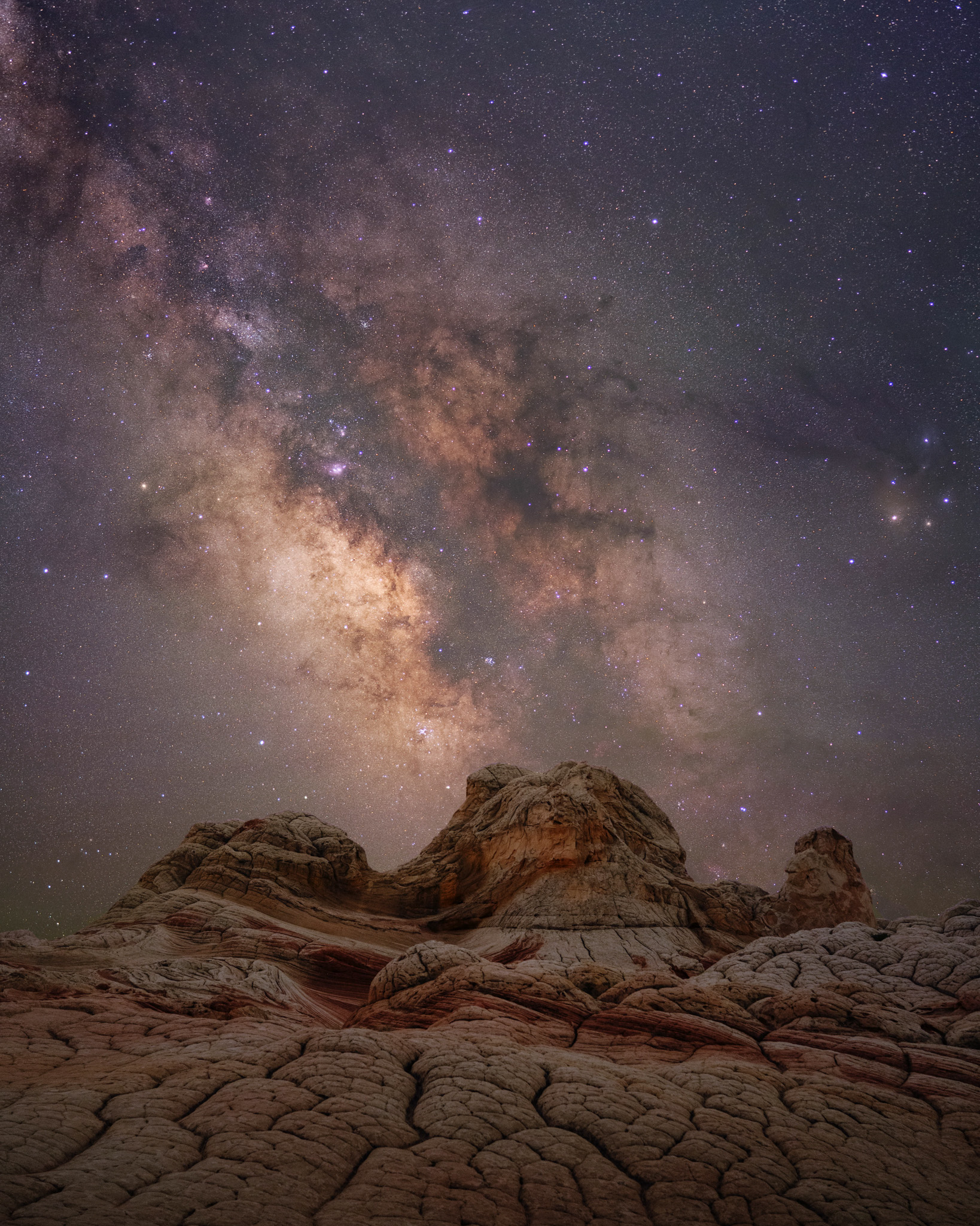 Of course, when combined with these techniques, the results are even more impressive. I’ve found that by stacking images captured with my F1.4 Art primes I am able to capture enough light on my foregrounds at F1.4 to make them usable in my final images, in many cases eliminating the need to capture blue hour foregrounds and composite images. This stack of ten 8-second exposures (below) shot at 35mm, F1.4 and ISO 5000 revealed incredible detail in the foreground rocks at White Pocket in Arizona on a night with no moonlight in a very dark area. Details also remained sharp across the frame, allowing me to capture the entire scene in one moment.