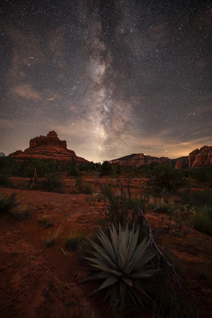 In addition to pinpoint sharp stars, another benefit of shorter night sky exposures is that we capture more frames per minute. This is especially important when creating time lapse sequences that show the motion of the night sky. Time lapses are videos made up of hundreds of individual images. To appear smooth, these clips need to have at least 24 individual frames per second of video, which means the longer our exposure times, the longer it takes to create a sequence that meaningfully shows movement. The following clip of the Milky Way core rising over Sedona was created using a series of 13 second exposures at F1.4. That shorter exposure time allows the video to be smoother, cleaner, and longer than would have been possible when shooting longer exposures at a higher aperture.